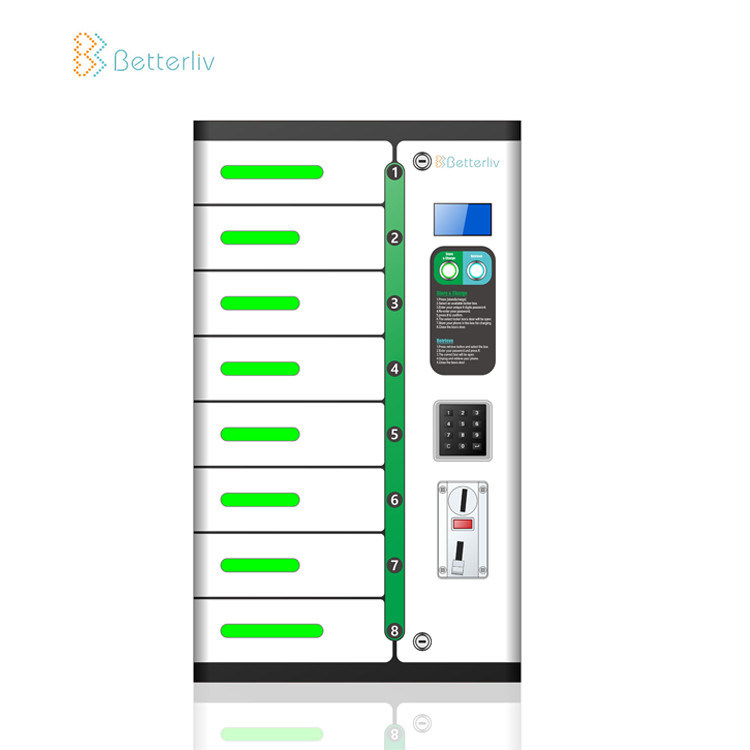 | ลักษณะเฉพาะ | 8 ช่องสำหรับจัดเก็บและชาร์จโทรศัพท์มือถือ + ระบบจ่ายเหรียญ |